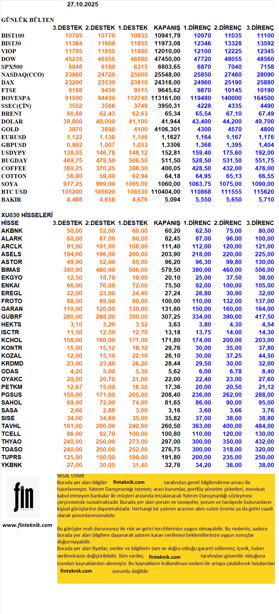BIST ALTIN DOLAR BRENT DESTEK DIRENÇLER